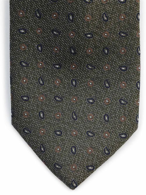 Suitable Tie Silk Small Paisley Olive Suitable Tie Silk Small Paisley Olive in the color Green is made from Silk with a Paisley and Printed design.Specifications